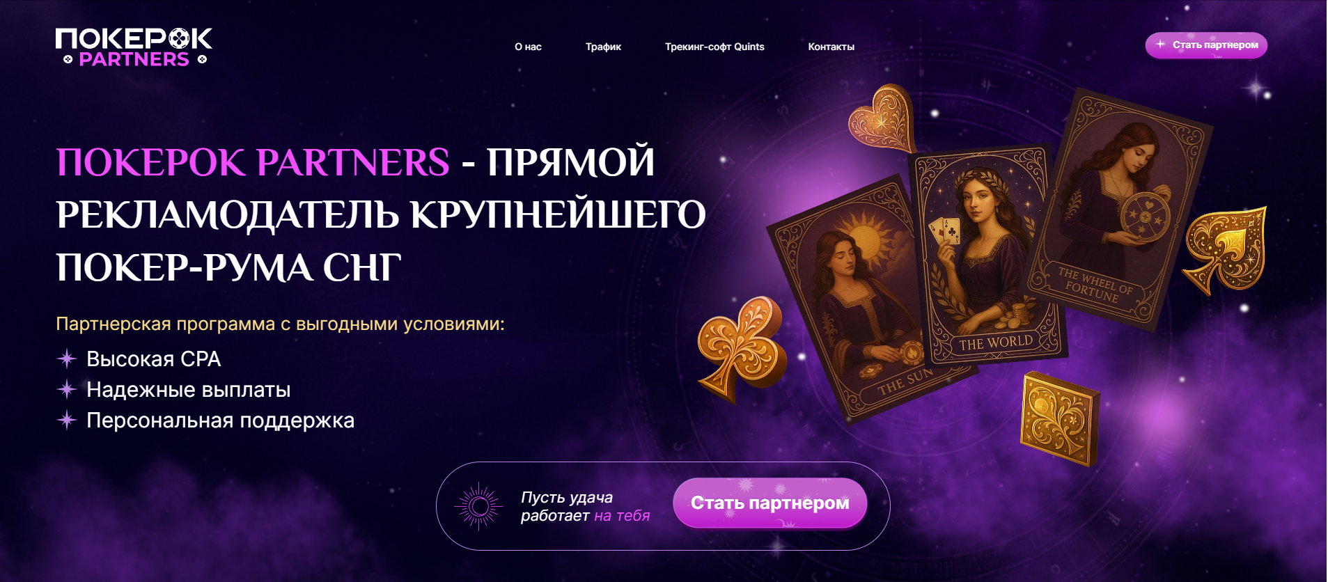 Это официальная партнерка покер-рума и онлайн-казино «ПокерОК», ориентированная на русскоязычный рынок. А «ПокерОК», в свою очередь, является частью самого популярного покер-рума в мире — GGPoker. В общем, это покерный оператор известного GGPoker, заточенный под Рунет и СНГ-трафик.